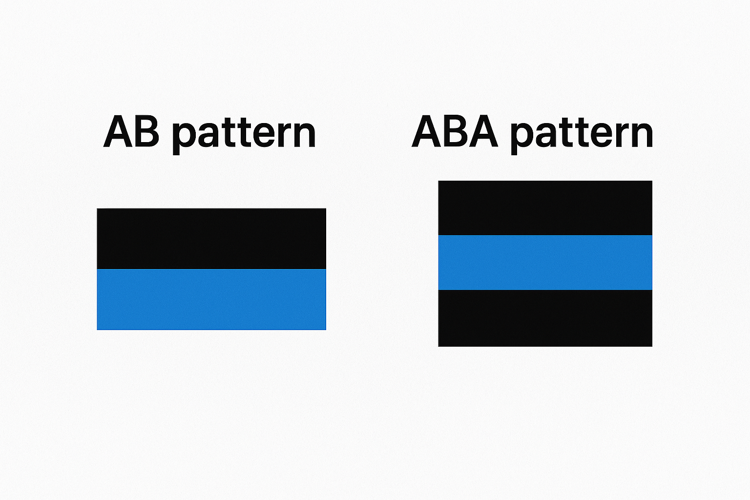 - Two-tone color scheme with your choice of AB (two stacked colors) or ABA (sandwiched pattern) design.