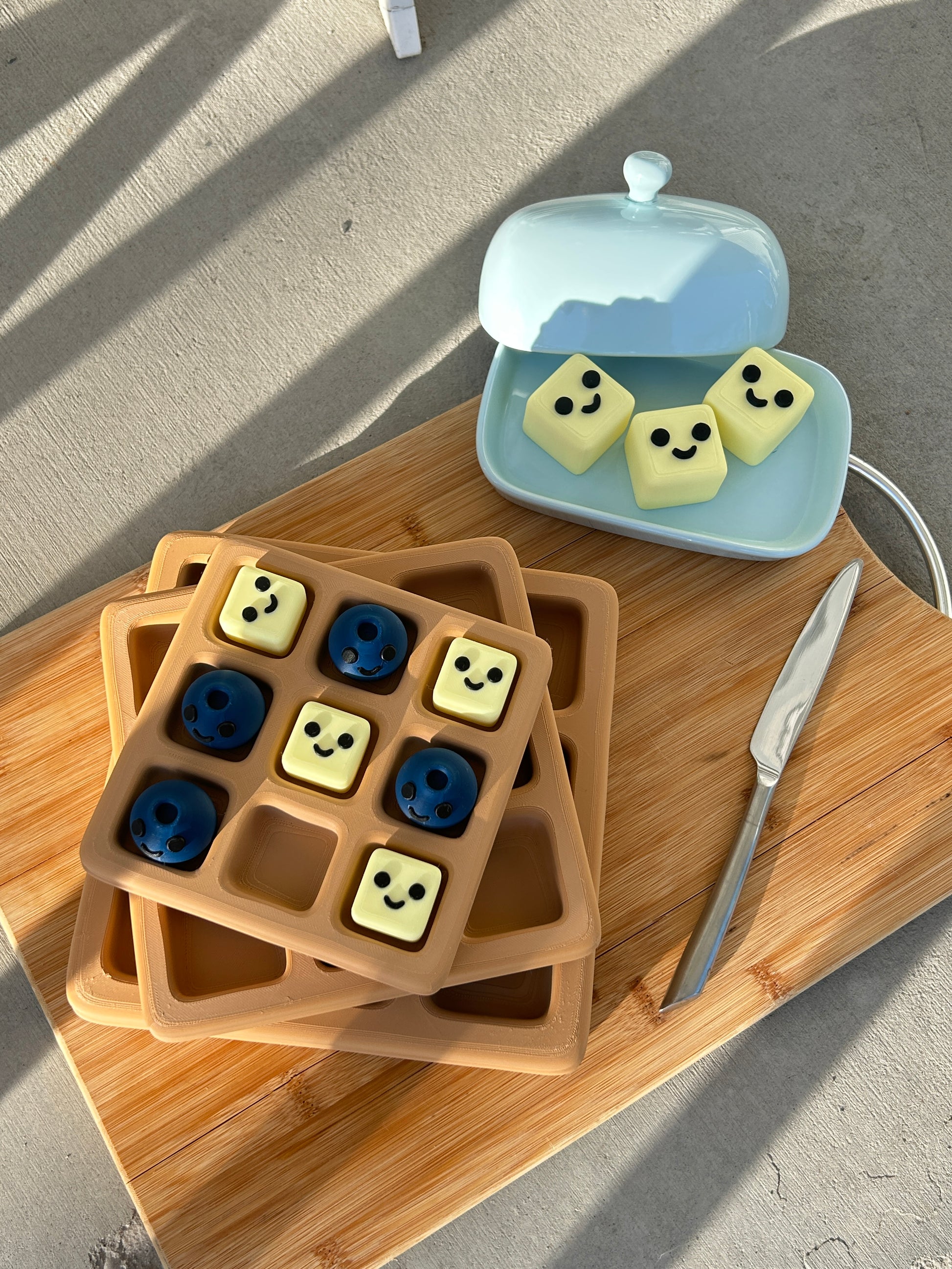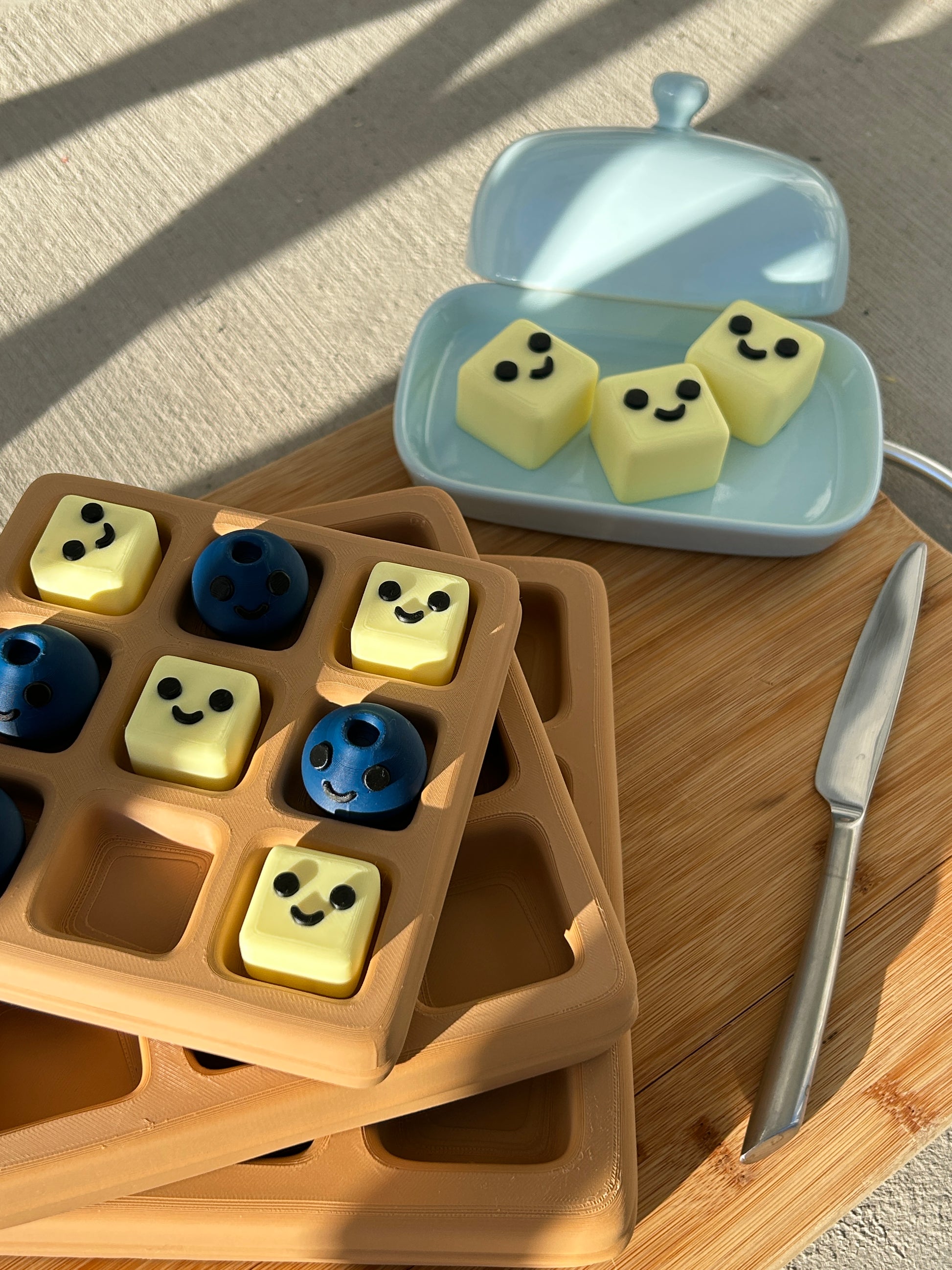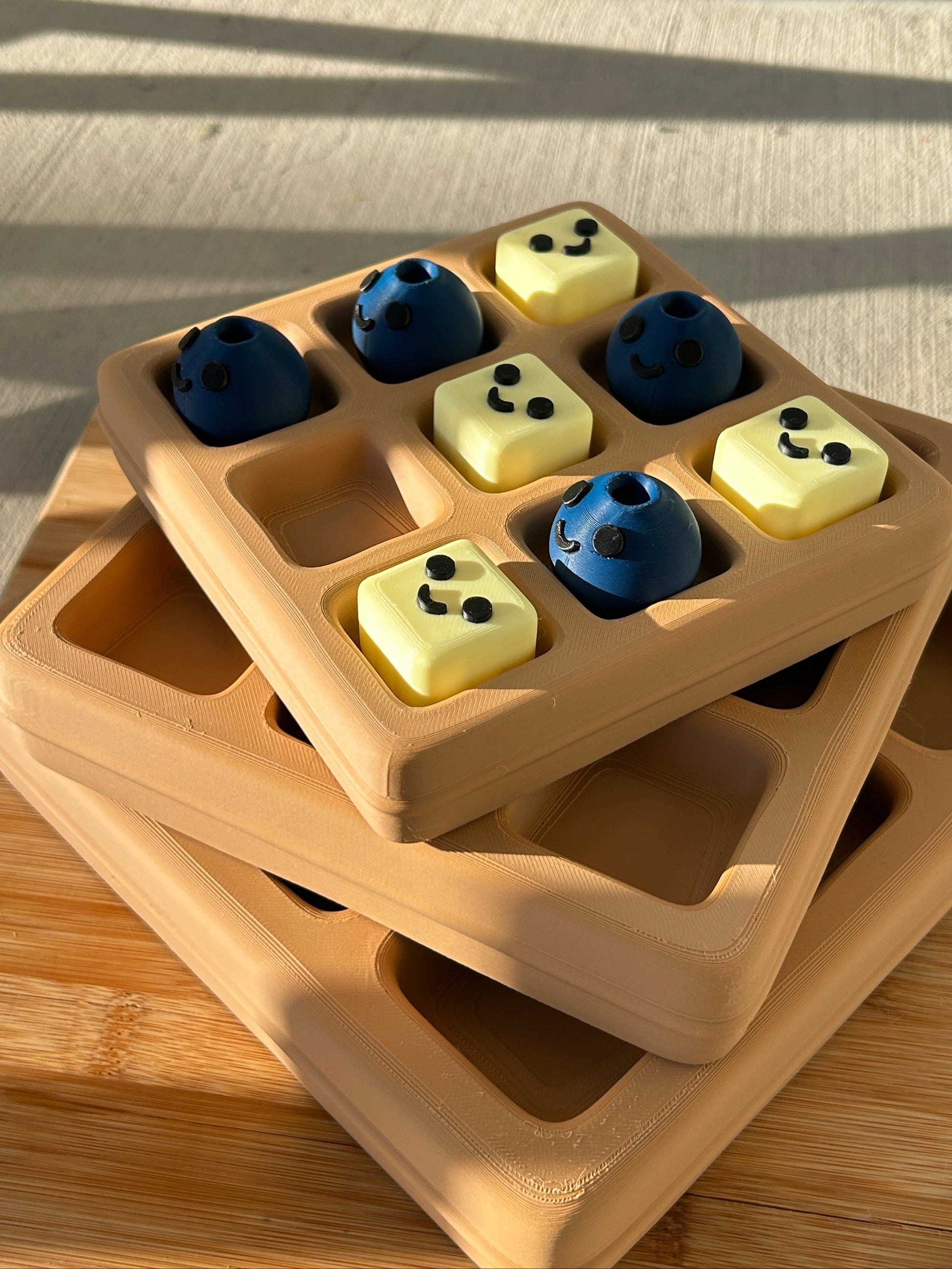 Bring breakfast fun to your game nights (or game time to breakfast!) with our 3D Printed Waffle Tic-Tac-Toe Set – a playful twist on the classic game that sparks joy and connection. Featuring a golden waffle grid, complete with realistic texture and nostalgic charm while the playing pieces come as adorable pats of butter and plump blueberries. Each piece is crafted with precision and a touch of humor, making it a delightful addition to your home, classroom, or gift list.